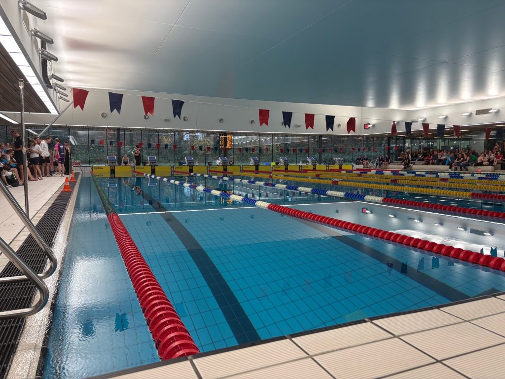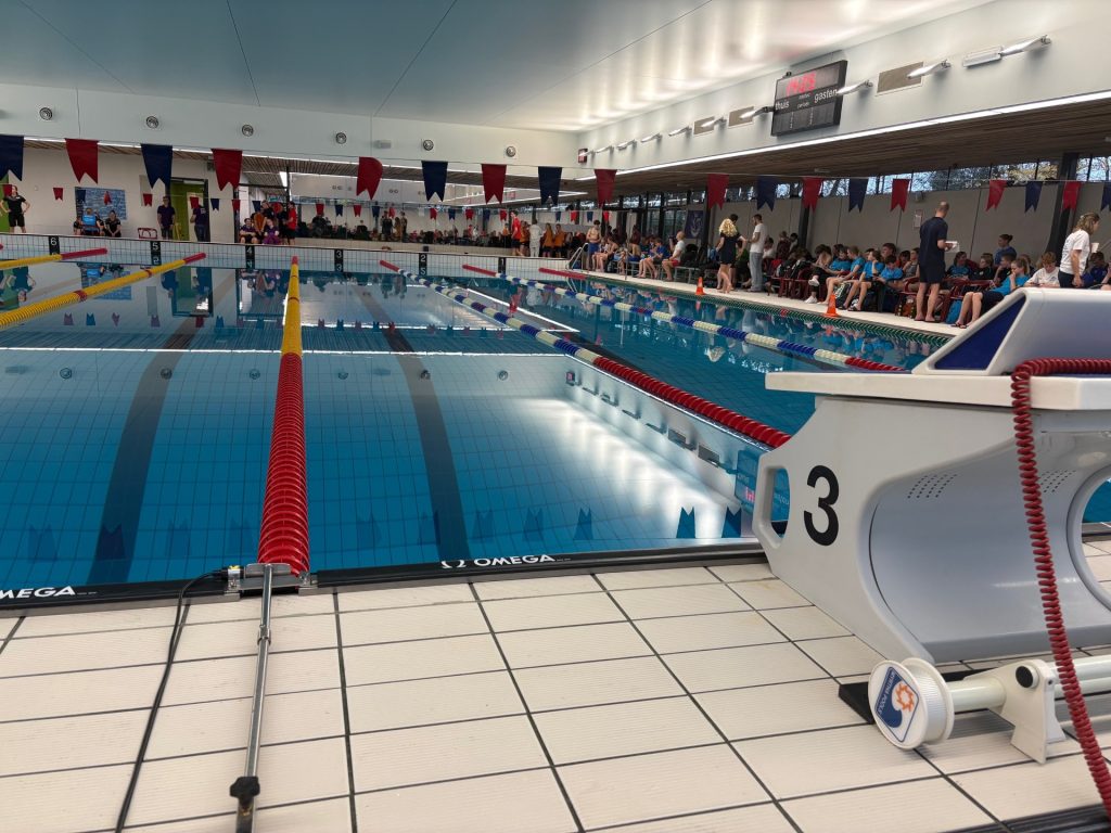 Toen we zaterdag 6 december aankwamen, kregen we helaas slecht nieuws: de chloorwaarden in het zwembad waren te laag. Alle zwemactiviteiten die plaatsvonden vóór het GK werden voortijdig gestopt en bezoekers moesten het zwembad direct verlaten. Gelukkig mochten onze zwemmers en de ploegleiding wel naar binnen, maar het water in was tijdelijk verboden. Na ongeveer een uur kregen we het verlossende woord en kon het inzwemmen alsnog beginnen.
